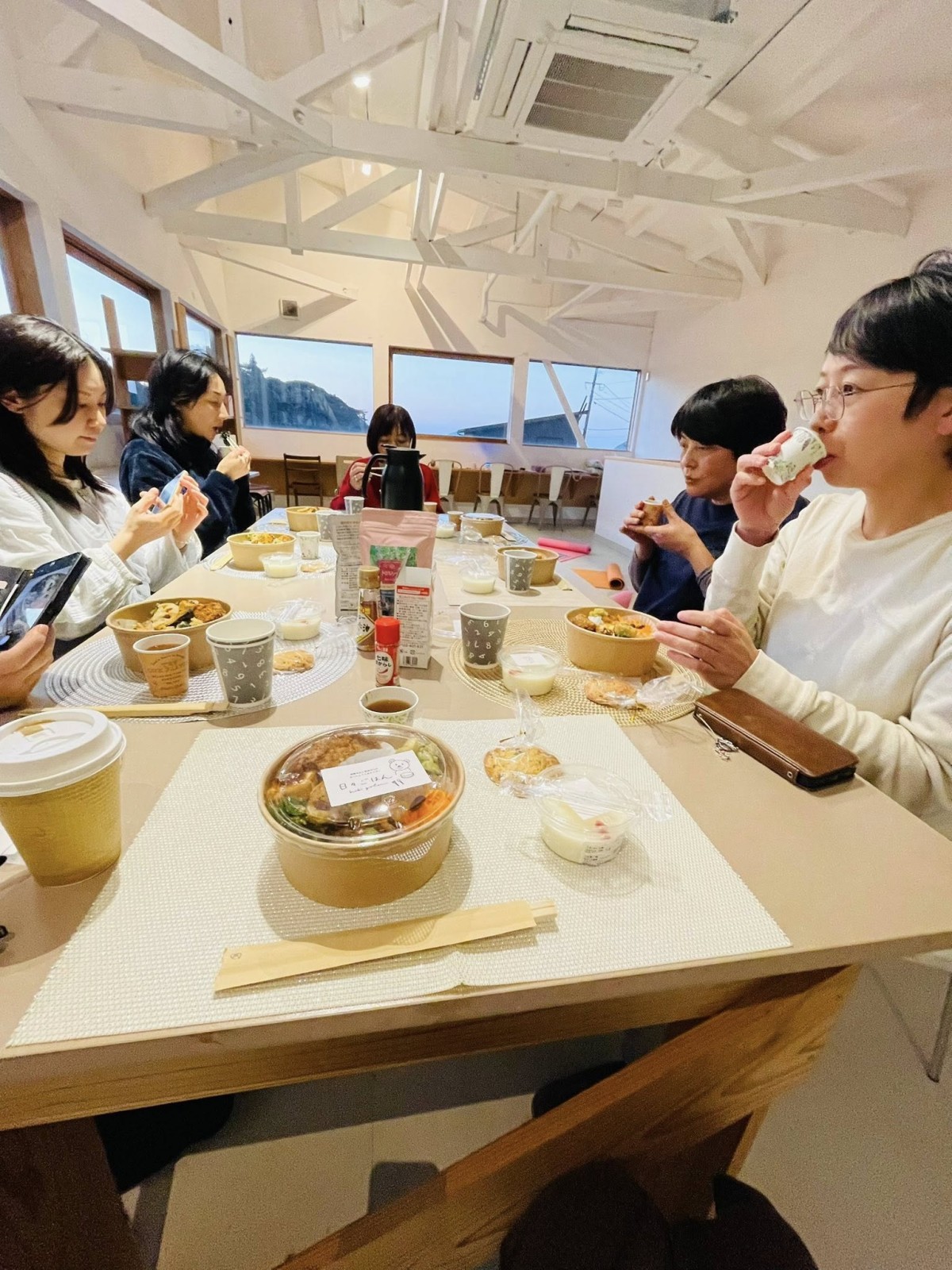午後のひと息には、皆さまと軽いお弁当を囲みながら歓談の時間を。